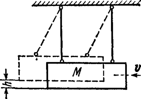 Кусочек пластилина массой m = 500 г, летевший со скоростью v = 10 м/с, попал в баллистический маятник массой M = 8 кг и застрял в нем. На какую высоту h, откачнувшись после удара, поднялся маятник