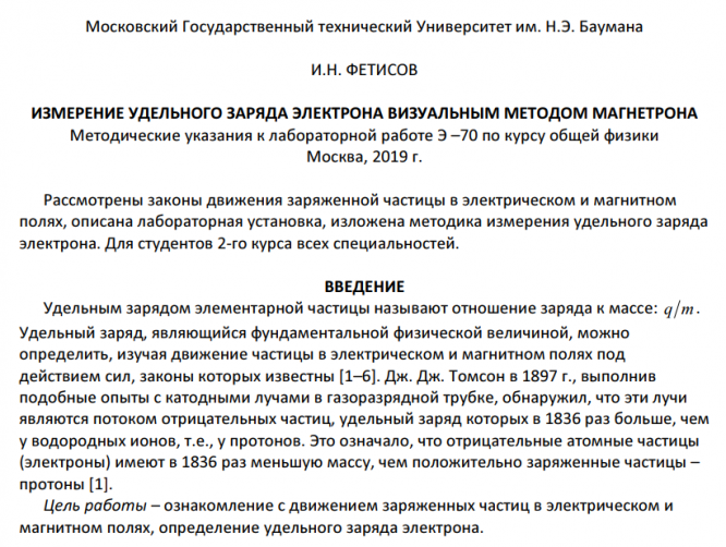 Для студентов МГТУ им. Н.Э.Баумана по предмету ФизикаИзмерение удельного заряда электрона визуальным методом магнетронаИзмерение удельного заряда электрона визуальным методом магнетрона 2020-10-30СтудИзба