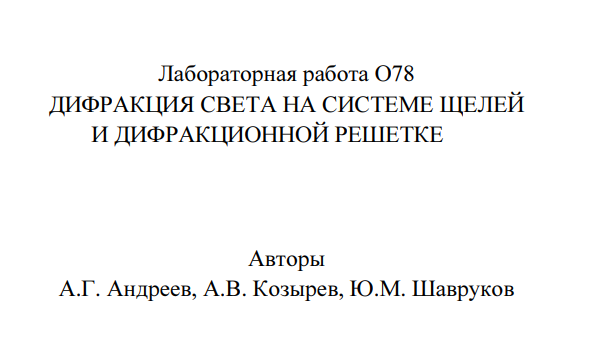 Книга О: Дифракция света на системе щелей и дифракционной решетке вариант 78