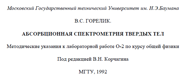 Для студентов МГТУ им. Н.Э.Баумана по предмету ФизикаАбсорбционная спектрометрия твердых телАбсорбционная спектрометрия твердых тел