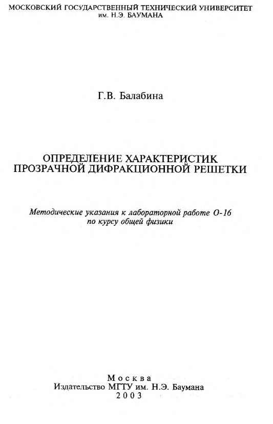Для студентов МГТУ им. Н.Э.Баумана по предмету ФизикаОпределение характеристик прозрачной дифракционной решеткиОпределение характеристик прозрачной дифракционной решетки