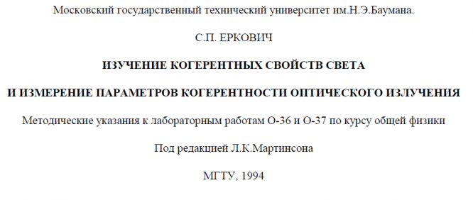 Книга О: Изучение когерентных свойств света и измерение параметров когерентности оптического излучения вариант 36, 37