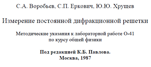 Книга О: Измерение постоянной дифракционной решетки вариант 41
