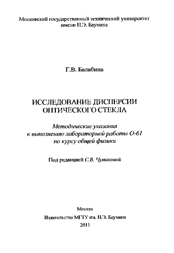Главная » Учебные материалы » Физика » Книги » МГТУ им. Н.Э.Баумана » 3 семестр » Номер О » Вариант 61 » Исследование дисперсии оптического стекла