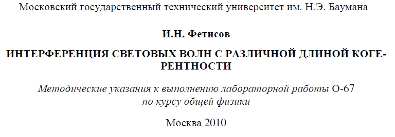 Для студентов МГТУ им. Н.Э.Баумана по предмету ФизикаИнтерференция световых волн с различной длиной когерентностиИнтерференция световых волн с различной длиной когерентности