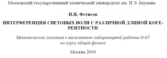 Главная » Учебные материалы » Физика » Книги » МГТУ им. Н.Э.Баумана » 3 семестр » Номер О » Вариант 67 » Интерференция световых волн с различной длиной когерентности