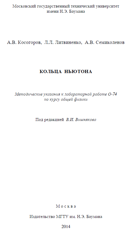 Для студентов МГТУ им. Н.Э.Баумана по предмету ФизикаКольца НьютонаКольца Ньютона 2020-10-30СтудИзба