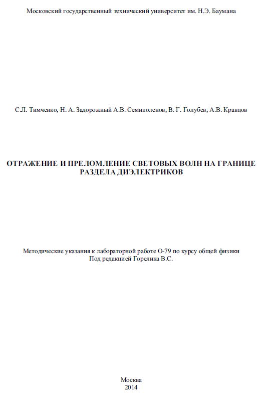 Главная » Учебные материалы » Физика » Книги » МГТУ им. Н.Э.Баумана » 3 семестр » Номер О » Вариант 79 » Отражение и преломление световых волн на границе раздела диэлектриков