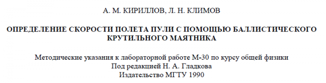 Книга М: Определение скорости полета пули с помощью баллистического крутильного маятника вариант 30