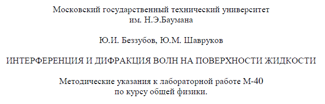 Для студентов МГТУ им. Н.Э.Баумана по предмету ФизикаИнтерференция и дифракция волн на поверхности жидкостиИнтерференция и дифракция волн на поверхности жидкости