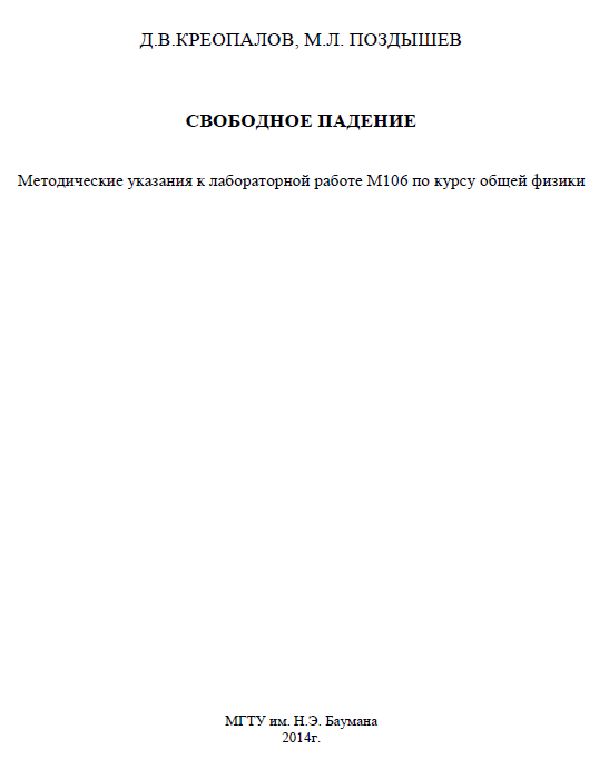 Для студентов МГТУ им. Н.Э.Баумана по предмету ФизикаСвободное падениеСвободное падение