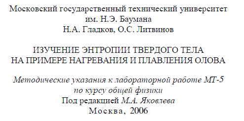 Главная » Учебные материалы » Физика » Книги » МГТУ им. Н.Э.Баумана » 2 семестр » Номер МТ » Вариант 5 » Изучение энтропии твердого тела на примере нагревания и плавления олова