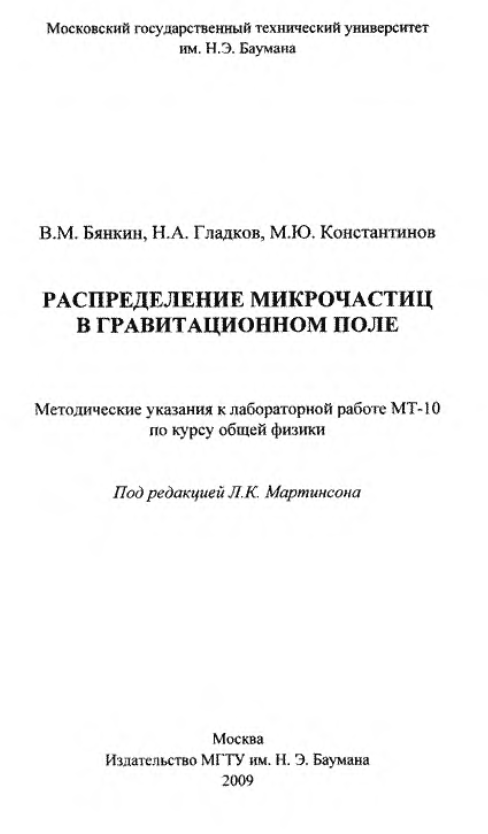 Для студентов МГТУ им. Н.Э.Баумана по предмету ФизикаРаспределение микрочастиц в гравитационном полеРаспределение микрочастиц в гравитационном поле 2020-10-30СтудИзба