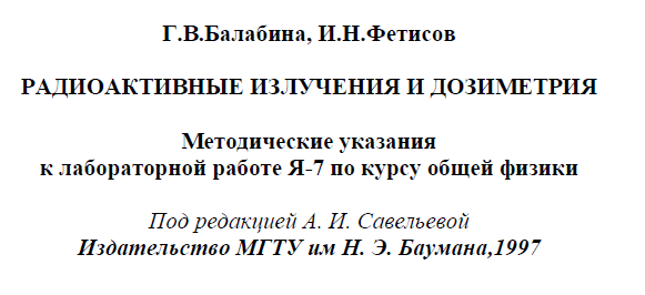 Главная » Учебные материалы » Физика » Книги » МГТУ им. Н.Э.Баумана » 4 семестр » Номер Я » Вариант 7 » Радиоактивные излучения и дозиметрия