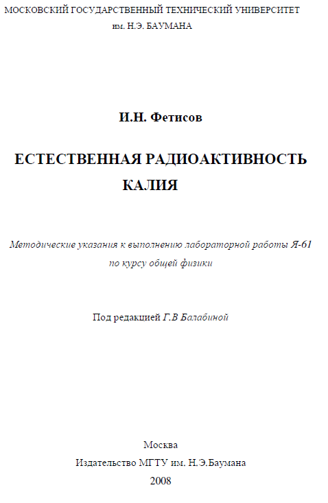 Для студентов МГТУ им. Н.Э.Баумана по предмету ФизикаЕстественная радиоактивность калияЕстественная радиоактивность калия 2020-10-30СтудИзба