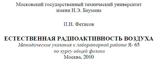 Главная » Учебные материалы » Физика » Книги » МГТУ им. Н.Э.Баумана » 4 семестр » Номер Я » Вариант 65 » Естественная радиоактивность воздуха
