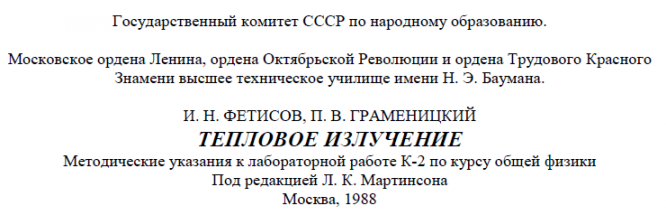Для студентов МГТУ им. Н.Э.Баумана по предмету ФизикаТепловое излучениеТепловое излучение 2020-10-30СтудИзба
