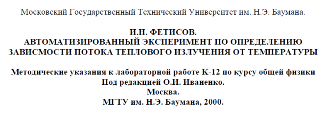 Для студентов МГТУ им. Н.Э.Баумана по предмету ФизикаАвтоматизированный эксперимент по определению зависимости потока теплового излучения от температурыАвтоматизированный эксперимент по определению зависимости потока теплового излучения от температуры 2020-10-30СтудИзба