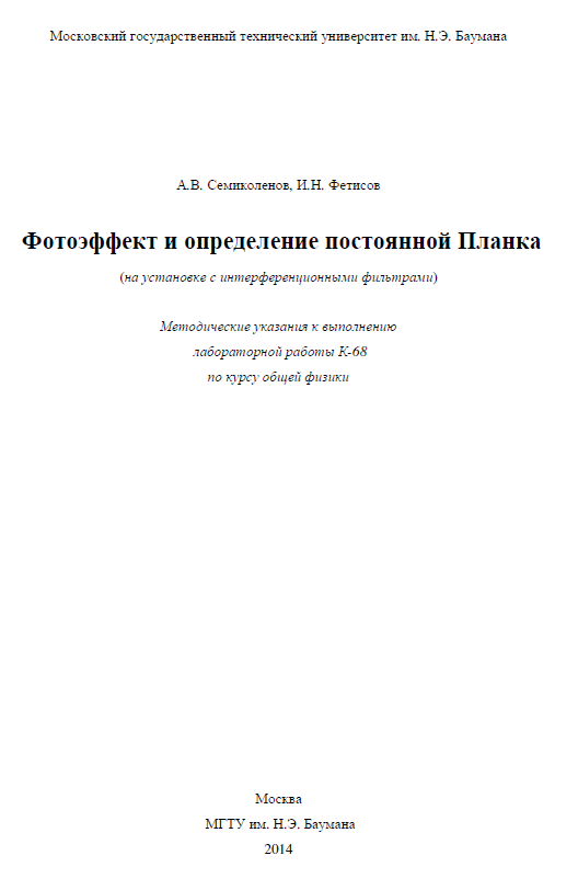 Главная » Учебные материалы » Физика » Книги » МГТУ им. Н.Э.Баумана » 4 семестр » Номер К » Вариант 68 » Фотоэффект и определение постоянной Планка (на установке с интерференционными фильтрами)
