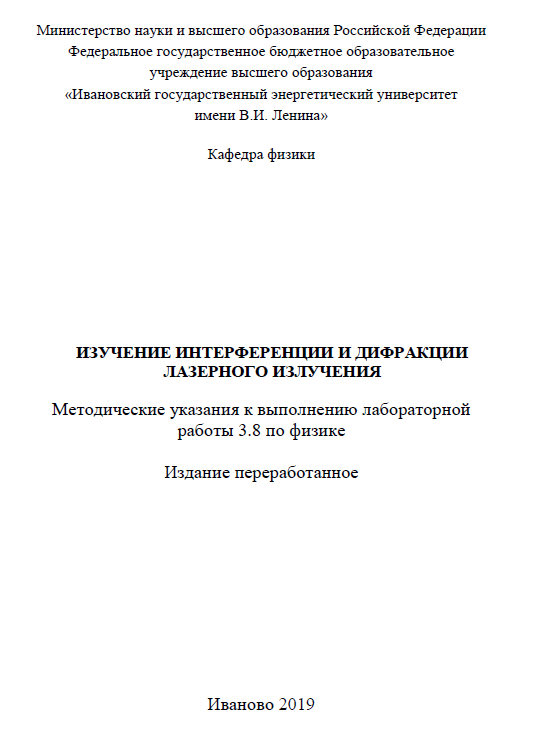 Для студентов ИГЭУ им. Ленина по предмету ФизикаИзучение интерференции и дифракции лазерного излучения - Методические указания к лабораторной работеИзучение интерференции и дифракции лазерного излучения - Методические указания к лабораторной работе
