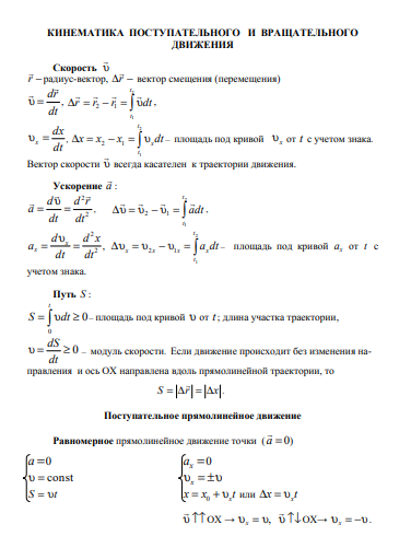 Для студентов УрГУПС по предмету ФизикаКинематика поступательного и вращательного движения с теориейКинематика поступательного и вращательного движения с теорией