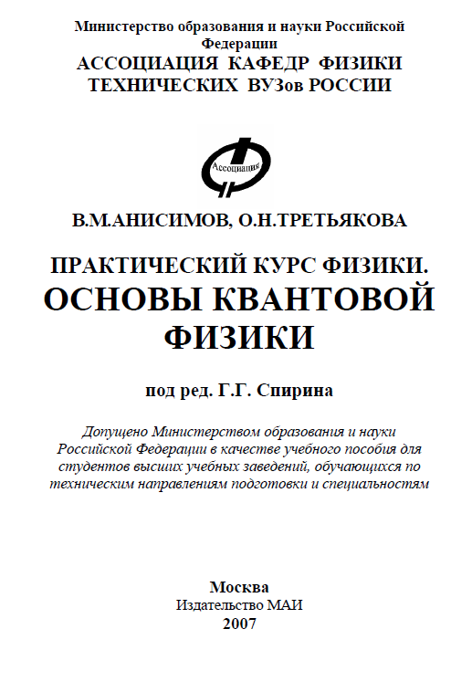 Для студентов МГТУ им. Н.Э.Баумана по предмету ФизикаВ.М. Анисимов, О.Н. Третьякова - Практический курс физики. Основы квантовой физикиВ.М. Анисимов, О.Н. Третьякова - Практический курс физики. Основы квантовой физики