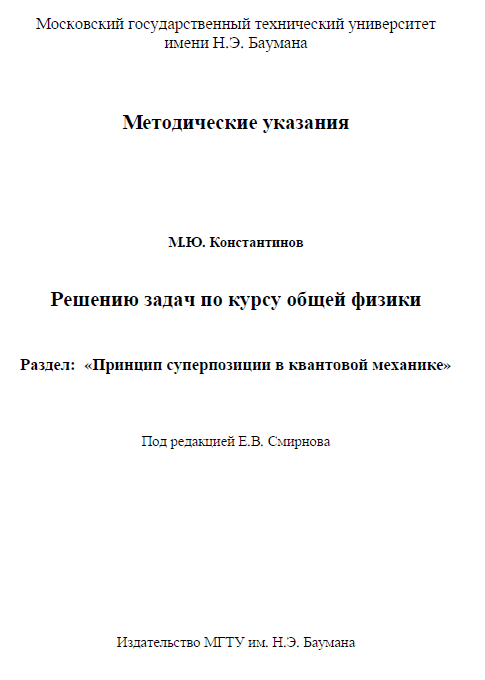 Для студентов МГТУ им. Н.Э.Баумана по предмету ФизикаМ.Ю. Константинов - Методические указания по решению задач по курсу общей физики - Принцип суперпозиции в квантовой механикеМ.Ю. Константинов - Методические указания по решению задач по курсу общей физики - Принцип суперпозиции в квантовой механике