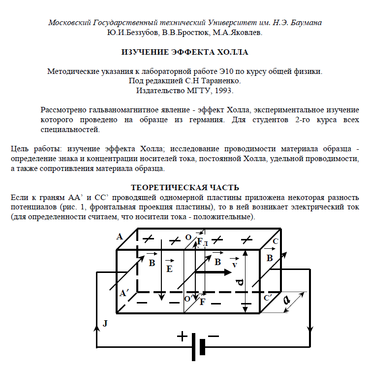 Для студентов МГТУ им. Н.Э.Баумана по предмету ФизикаИзучение эффекта ХоллаИзучение эффекта Холла