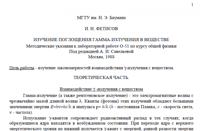 Главная » Учебные материалы » Физика » Книги » МГТУ им. Н.Э.Баумана » 4 семестр » Номер О » Вариант 51 » Изучение поглощения гамма-излучения в веществе