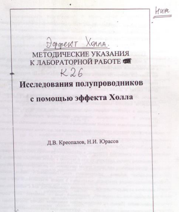 Книга К: Исследование полупроводников с помощью эффекта Холла вариант 26