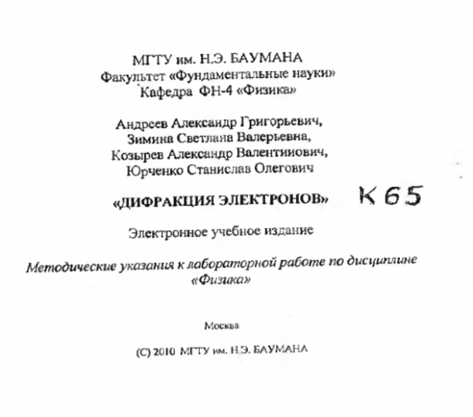 Для студентов МГТУ им. Н.Э.Баумана по предмету ФизикаДифракция электроновДифракция электронов 2023-07-08СтудИзба