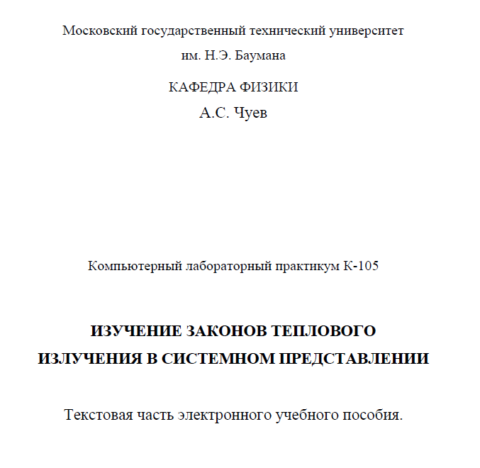 Для студентов МГТУ им. Н.Э.Баумана по предмету ФизикаИзучение законов теплового излучения в системном представленииИзучение законов теплового излучения в системном представлении