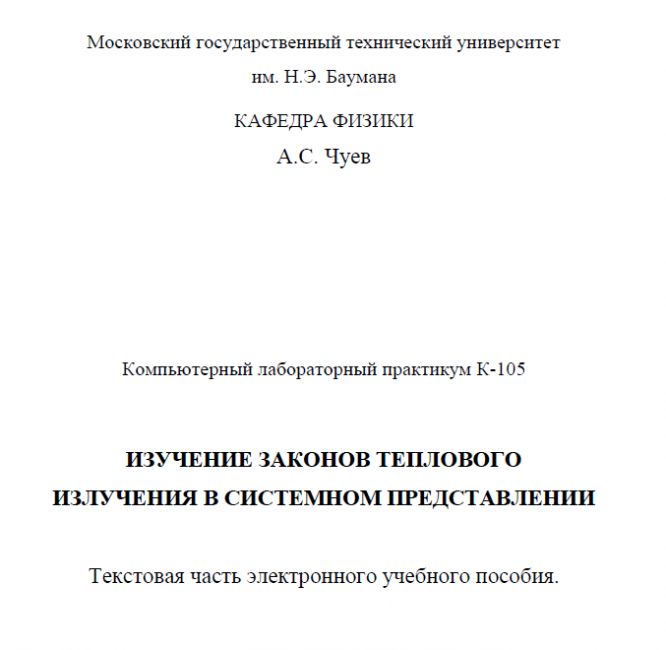 Главная » Учебные материалы » Физика » Книги » МГТУ им. Н.Э.Баумана » 4 семестр » Номер К » Вариант 105 » Изучение законов теплового излучения в системном представлении