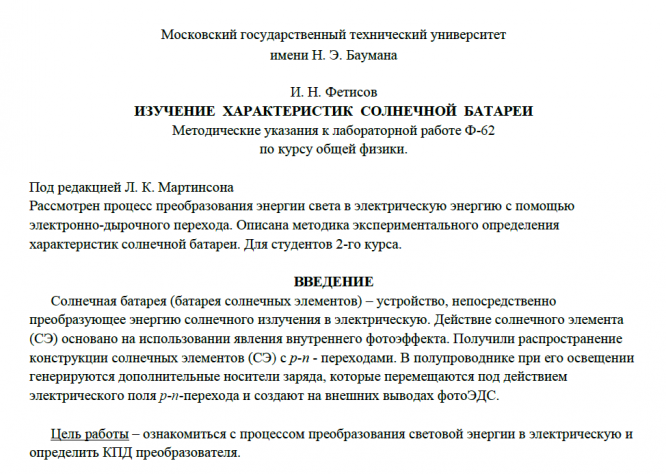 Главная » Учебные материалы » Физика » Книги » МГТУ им. Н.Э.Баумана » 4 семестр » Номер Ф » Вариант 62 » Изучение характеристик солнечной батареи