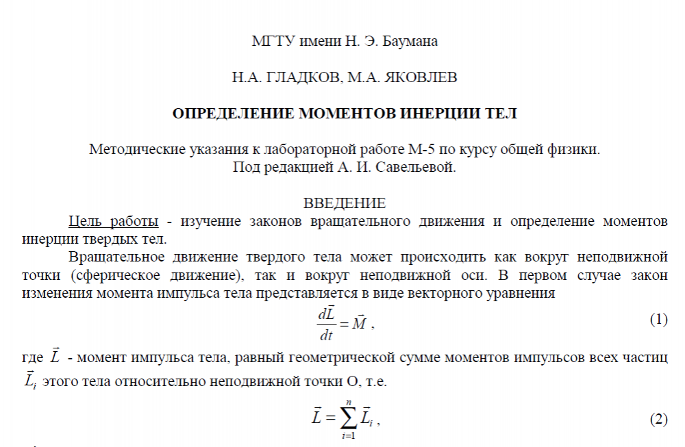 Для студентов МГТУ им. Н.Э.Баумана по предмету ФизикаОпределение моментов инерции телОпределение моментов инерции тел