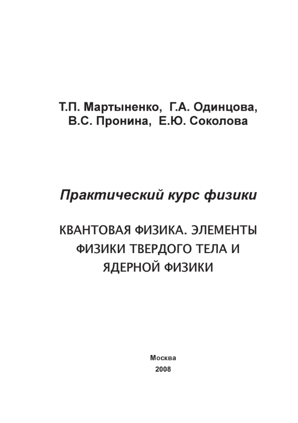 Книга: Т.П. Мартыненко — Практический курс физики. Квантовая физика, элементы физики твердого тела и ядерная физика