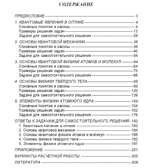 Настоящее учебное пособие посвящено разделу “Квантовая физика. Элементы физики твердого тела и ядерной физики” по программе курса общей физики для ВТУЗов и предназначено для самостоятельной работы студентов при решении задач по физике. Пособие состоит из пяти глав. Каждая глава начинается с краткого теоретического введения, в котором изложены основные физические понятия и законы. Далее приводится подробное решение типовых задач с соответствующими методическими указаниями. В конце каждой главы подобраны задачи для самостоятельного решения, ответы к которым приводятся в заключительной части пособия. По этим задачам на кафедре составлены индивидуальные домашние задания для студентов всех факультетов.