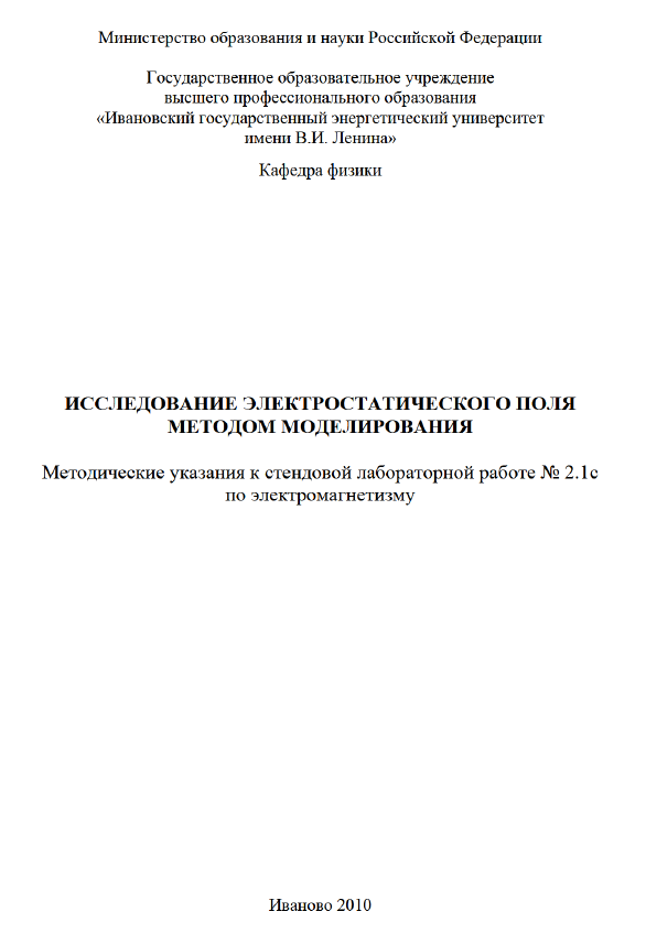 Для студентов ИГЭУ им. Ленина по предмету ФизикаКрылов И.А. - Исследование электростатического поля методом моделированияКрылов И.А. - Исследование электростатического поля методом моделирования 2025-05-20СтудИзба