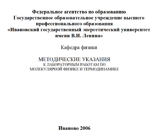 Главная » Учебные материалы » Физика » Книги » ИГЭУ им. Ленина » 2 семестр » Номер 2.1 » Костюк В.Х., Шмелева Г.А. - Методические указания к лабораторным работам по молекулярной физике и термодинамике