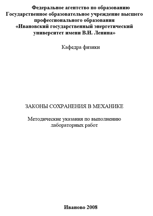 Главная » Учебные материалы » Физика » Книги » ИГЭУ им. Ленина » 1 семестр » Номер 1.1 » Костюк В.Х., Шмелева Г.А. - Законы сохранения в механике