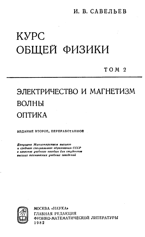 Для студентов ИГЭУ им. Ленина по предмету ФизикаСавельев И.В. - Курс общей физики. Том 2. Электричество и магнетизм. Волны. ОптикаСавельев И.В. - Курс общей физики. Том 2. Электричество и магнетизм. Волны. Оптика 2025-05-20СтудИзба