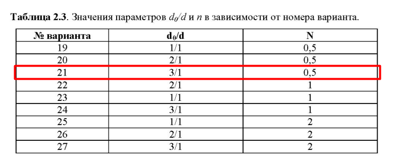 Значения параметров d0/d и n в зависимости от номера варианта. .