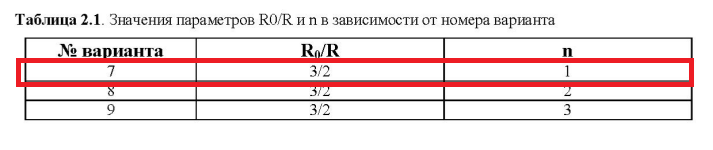 Функция =f(r) для чётных вариантов имеет вид: =(Rn +rn )/2Rn . Функция =f(r) для нечётных вариантов имеет вид: =(R0 n +Rn -rn )/Rn . Таблица 2.1. Значения параметров R0/R и n в зависимости от номера варианта.