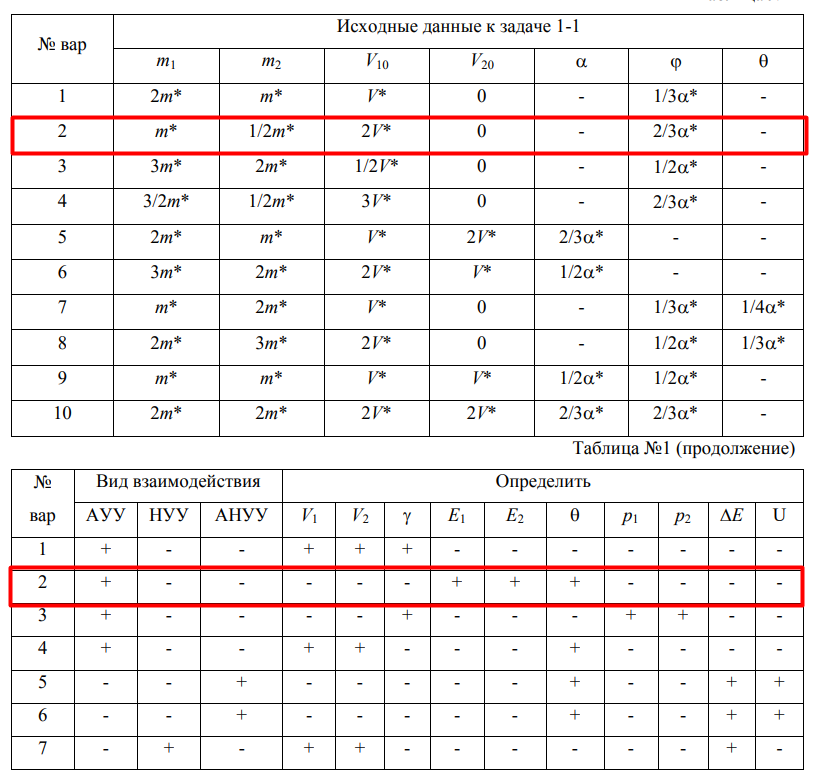 Две гладкие частицы сферической формы с массами m1 и m2, движущиеся со скоростями V10 и V20 , сталкиваются под углом , как указано на рис.1. Расстояние до места встречи и скорости частиц соответствуют условиям соударения (отсутствию промаха). Задача 2-1 для вариантов с 1 по 6
