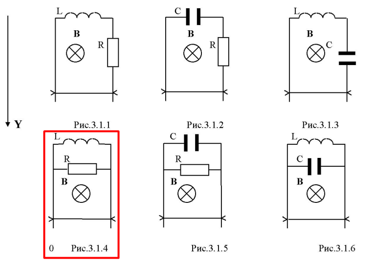Задача 3.1. По двум гладким медным шинам, установленным вертикально в однородном магнитном поле B скользит под действием силы тяжести медная перемычка массы m, которая замыкает электрическую цепь, приведенную на рисунке. Расстояние между шинами l. Сопротивления шин, перемычки и скользящих контактов, а также самоиндукция контура пренебрежимо малы. Найти закон движения перемычки Y(t) при условии, что начальная скорость, ток через индуктивность и заряд на конденсаторе равны 0, Y(0)=Y0. L C L B B B R R C Y Рис.3.1.1 Рис.3.1.2 Рис.3.1.3 L C L R R C B B B 0 Рис.3.1.4 Рис.3.1.5 Рис.3.1.6 Таблица 3.1.1 Номера вариантов и значения параметров L , R , C для соответствующего номера рисунка. Варианты 1-8.