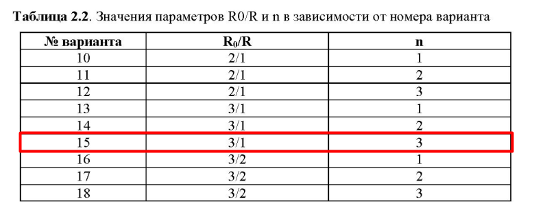 Функция =f(r) для чётных вариантов имеет вид: =(R0 n +rn )/(R0 n +Rn ). Функция =f(r) для нечётных вариантов имеет вид: =(Rn +rn )/2Rn . Таблица 2.2. Значения параметров R0/R и n в зависимости от номера варианта.