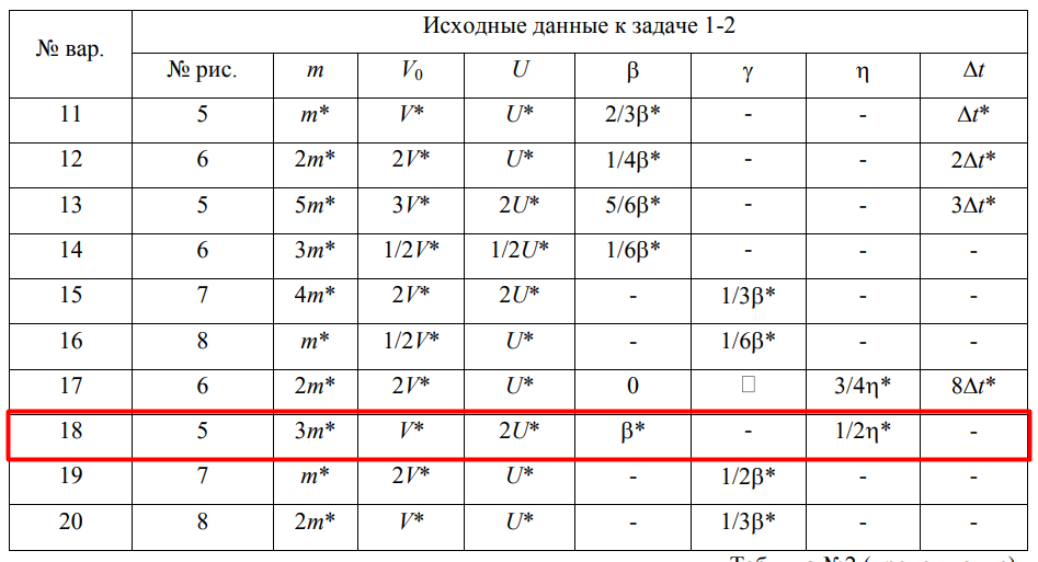 Задача 1-2 для вариантов с 11 по 20