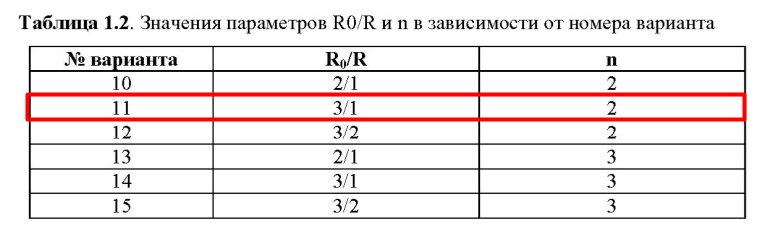 Функция =f(r) для чётных вариантов имеет вид: =(R0 n +rn )/(R0 n +Rn ). Функция =f(r) для нечётных вариантов имеет вид: =(Rn +rn )/2Rn . Таблица 2.2. Значения параметров R0/R и n в зависимости от номера варианта .