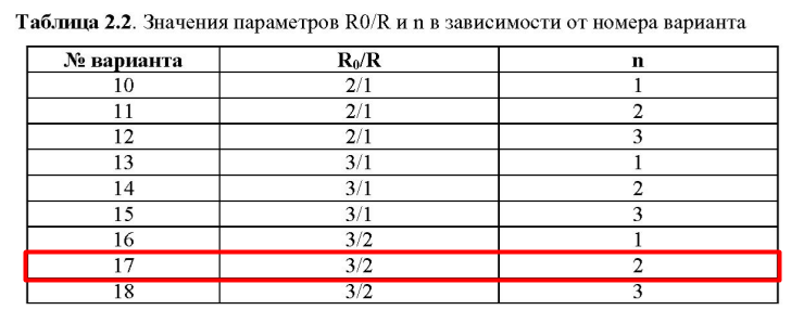 Функция =f(r) для чётных вариантов имеет вид: =(R0 n +rn )/(R0 n +Rn ). Функция =f(r) для нечётных вариантов имеет вид: =(Rn +rn )/2Rn . Таблица 2.2. Значения параметров R0/R и n в зависимости от номера варианта  .