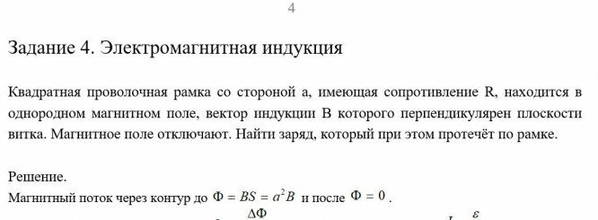 Квадратная проволочная рамка со стороной a, имеющая сопротивление R, находится в однородном магнитном поле, вектор индукции B которого перпендикулярен плоскости витка. Магнитное поле отключают. Найти заряд, который при этом протечёт по рамке.